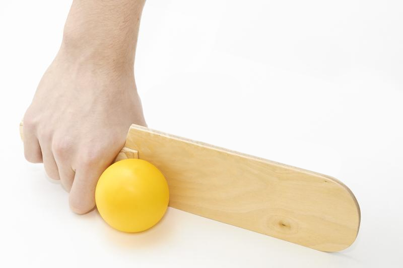 Конструкция ракетки имеет прямоугольную форму, не имеет прорезиненного покрытия и выполнена целиком из дерева, которое в отличии от резины не способно поглощать звук.