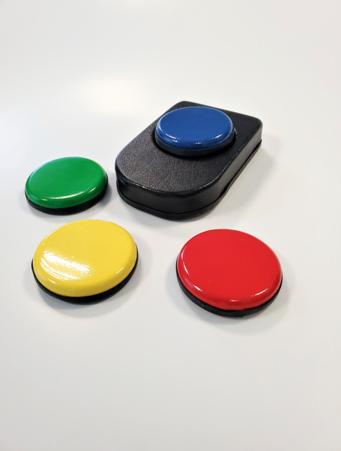 Кнопка-игровой коммуникатор предназначена для улучшения качества общения и коммуникации детей, имеющих проблемы со слуховым, зрительным, тактильным восприятием. Представляет собой компактный корпус с большой кнопкой, предназначенной для записи и воспроизведения сообщений. Диаметр кнопки позволяет использовать представленное устройство незрячим людям, также хорошо подойдёт для тех, кто имеет нарушения опорно-двигательного аппарата и нуждаются в большой целевой площади. Устройство изготовлено из высококачественного ударопрочного пластика, имеет обтекаемые плавные формы без острых краёв и углов.