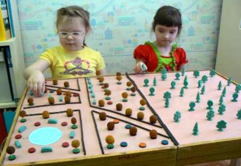 Прибор «Ориентир» необходимо использовать в учебном процессе в школах для слепых и слабовидящих детей, начиная с первого класса. Достаточно легко с помощью элементов прибора можно объяснить такие понятия, как: прямая и кривая линии, окружность, длинна отрезка и т. д. Особенно прибор полезен при изучении системы Брайля. В частности, достаточно легко строятся Брайлевсие буквы. Для этого необходимо: построить прямоугольник из узких магнитных полос и элементами «Деревья» или «Кустарники» обозначать точки соответствующих букв. С помощью узких полосок можно выкладывать различные плоско-печатные буквы, цифры, арифметические знаки и т. д. Именно, в младших классах следует ученику давать задания построить: план класса , план школы, план школьной территории, расположение снарядов в физкультурном зале . Причём, построение объекта можно осуществлять и по частям. Выполнение всех этих упражнений в значительной степени развивает пространственное представление и моторику ребёнка.