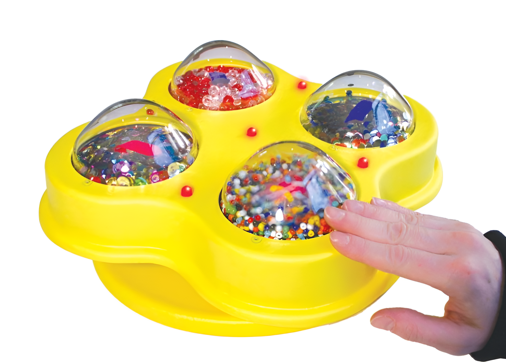 При легком нажатии на любом участке центра, активируется один из четырех куполов — раздается музыка или загораются огни, разноцветные блестки и бисер начинают вращаться. В то же время, вы можете ощутить легкую вибрацию.