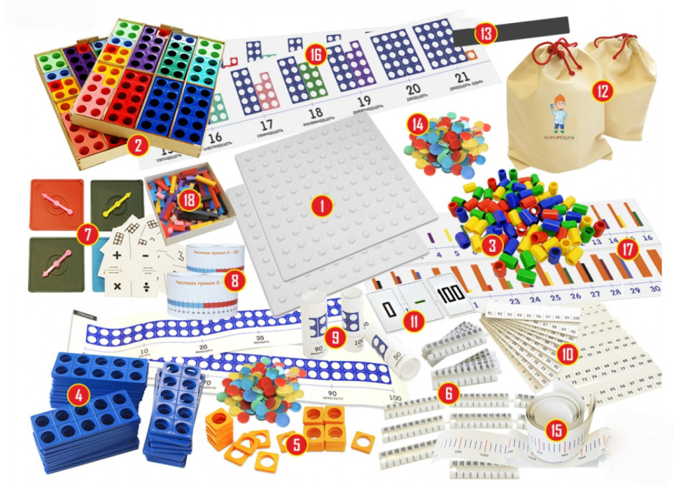 Базовый набор Нумирошка для групповых занятий с детьми 7-9 лет – хороший выбор для детского сада или оздоровительного центра, где занятия проводятся в группе детей. Данная система поможет детям обучиться базовым математическим навыкам, а также развить усидчивость, мышление, тактильность.